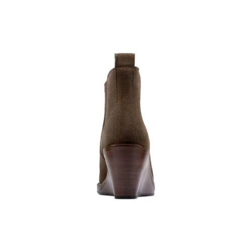 A modern Chelsea boot silhouette creates this smart casual women’s boot, combining dark olive suede and elastic panels with a heel loop, while the 7.5cm lightweight wedge heel adds wearable height. Leather linings feel luxurious against the foot.