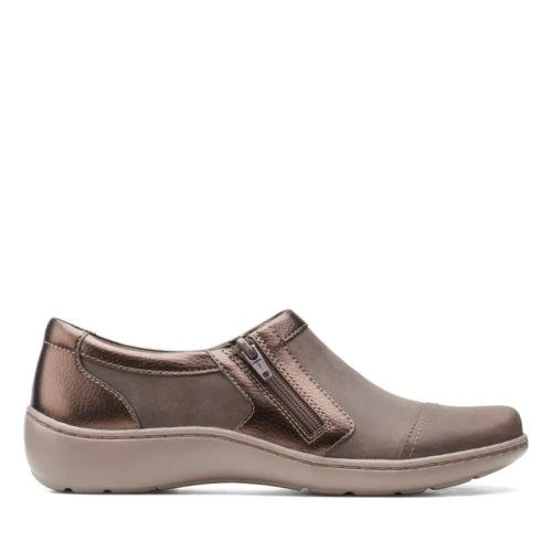 Cora Giny is a casual women’s trouser shoe that teams a taupe leather mix upper with a sporty moulded sole. Perfect for travel and running everyday errands, the easy wearing profile features zip closures and textile linings.