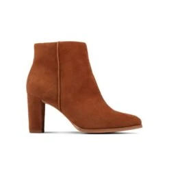 Dress up, dress down, these high heeled ankle boots with an almond toe are crafted from dark tan suede and feature a suede wrapped 8.5cm block heel for wearable height.