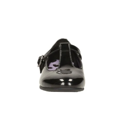 Kids will love this dainty pump, a must-have this season. In black patent to give that ultra glossy look, our designers have taken the classic T-bar silhouette and given it an update with a feminine almond toe.