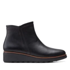 A simply designed, super-wearable women’s ankle boot, warmlined, so perfect for everyday errands on colder days. The black leather upper is beautifully cut and stitched with Clarks crafted attention to detail and fastens with an inside zip.